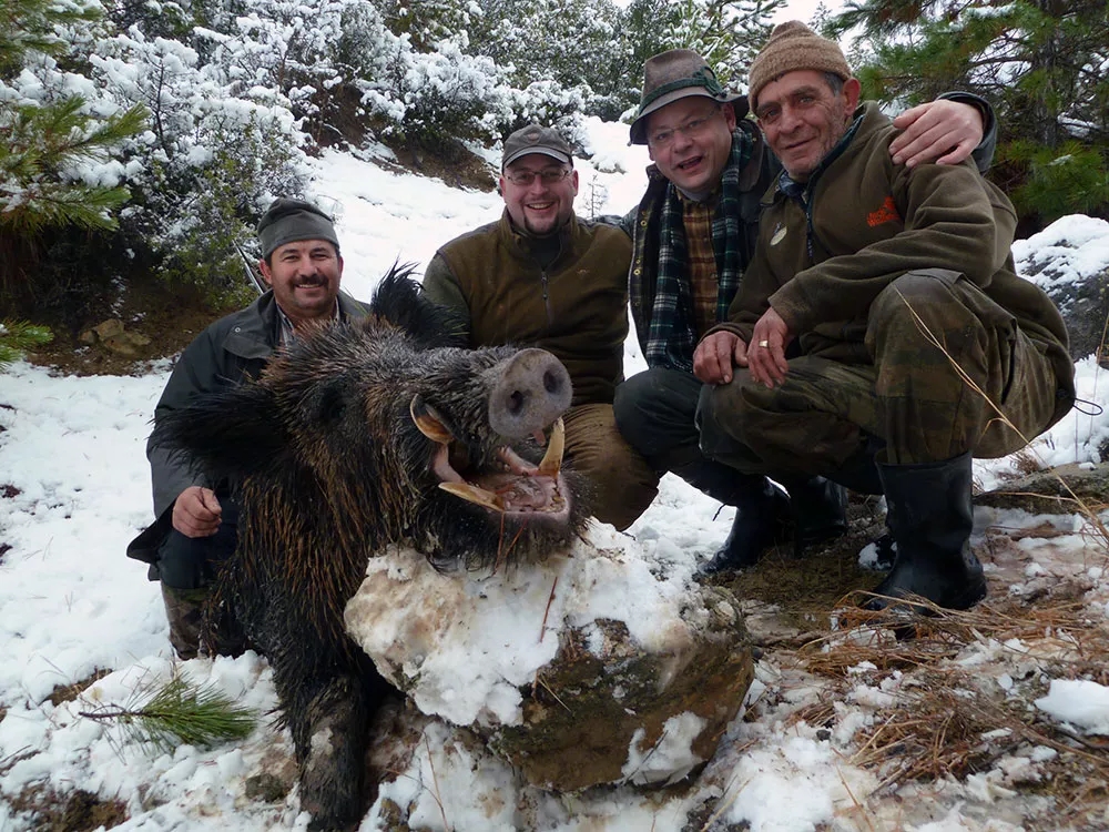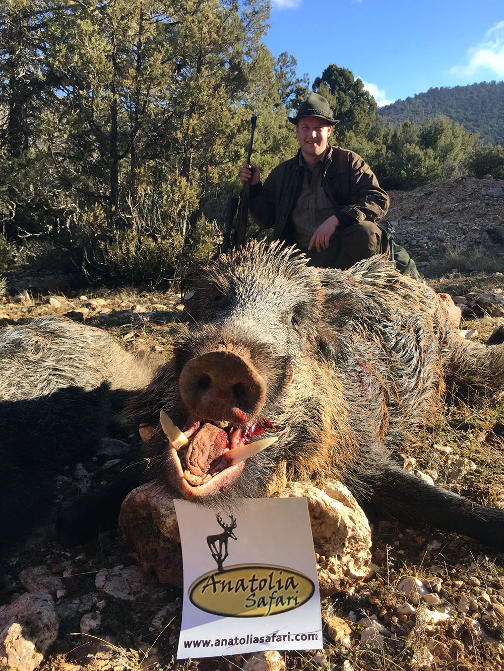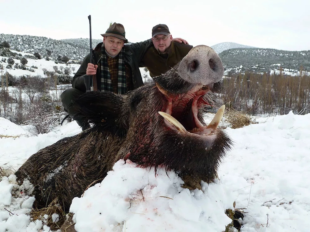 Les statistiques montrent que les chasseurs chassent en moyenne 10 à 20 sangliers sauvages par jour. La plupart des sangliers chassés ont d'excellentes longueurs de défenses mesurant 20-24 cm et plus. Les nuits peuvent être passées à évaluer la journée, à profiter de la cuisine turque (rôti de venaison sur demande) et à se détendre ou à célébrer. Remarque : Les chasseurs peuvent amener leurs chiens avec eux.