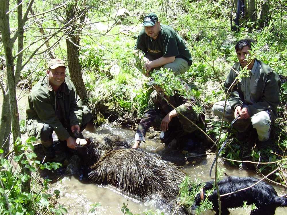 La chasse de 4 jours (3 jours sur demande) se déroule dans des terrains de chasse préparés pour l'hébergement. Des guides bien orientés ont observé l'ensemble du terrain, suivi les troupeaux de sangliers et organisé des points de tir pour vous. Il est important que les chasseurs voient la région de chasse, l'équipe de battue et les chiens à l'avance.