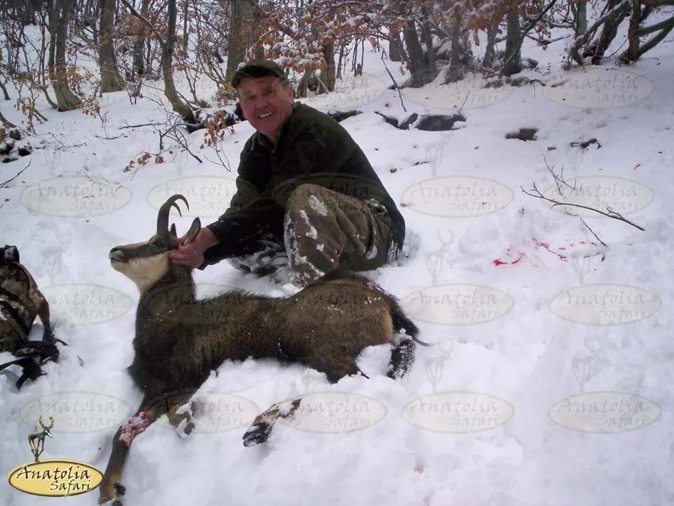 Для охоты на лучшие головы серн в Турции ежегодно выдается ограниченное число лицензий! Серны, которые обитают в области Северо-восточной Анатолии в Турции в районе Качкарских гор, предпочитают крутые склоны и вершины высотой 2000-3000 м. Их длина в холке достигает 80 см, а вес – 50 кг. У самцов и самок имеются черные рога длиной 20 - 28 см, которые растут у них на лбу и загнуты назад как крючки. Окрас меха различный, у серны есть темная полоска на спине и темная метка на голове. Летом серны обитают неподалеку от снеговой линии гор, где питаются травой и растениями. Зимой они спускаются в глубоко расположенные горные леса, где питаются в основном почками и лишайниками. Серны живут стадом, состоящим из 5-30 животных.